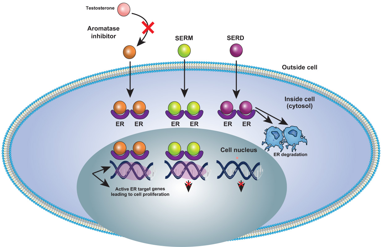 Anti-estrogen therapy targeting the estrogen-mediated signaling pathway is an essential component of treatment for both early and advanced-stage breast cancer expressing the estrogen receptor (ER) and/or progesterone receptor (PR).