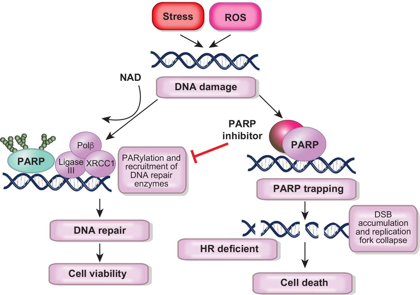 In breast cancer, two PARP inhibitors, Olaparib and Talazoparib, have been approved for treatment of gBRCAm carriers with metastatic HER2-negative breast cancer based on the OlympiAD and EMBRACA trials, respectively.