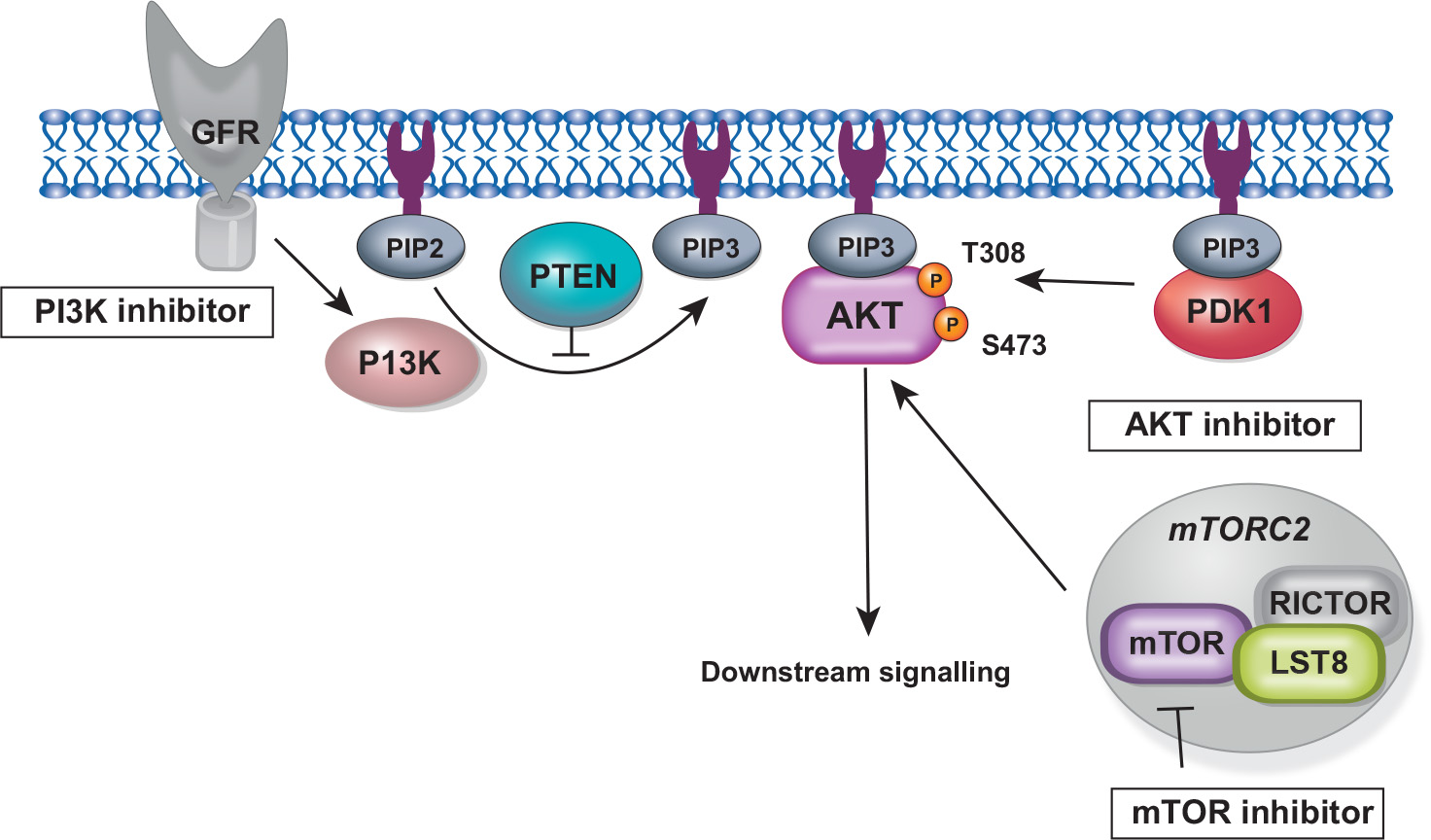 The occurrence and development of breast cancer are driven by gene mutation and dysregulation of cell signaling pathways, and PI3K–AKT signaling is the most upregulated pathway in breast cancer.